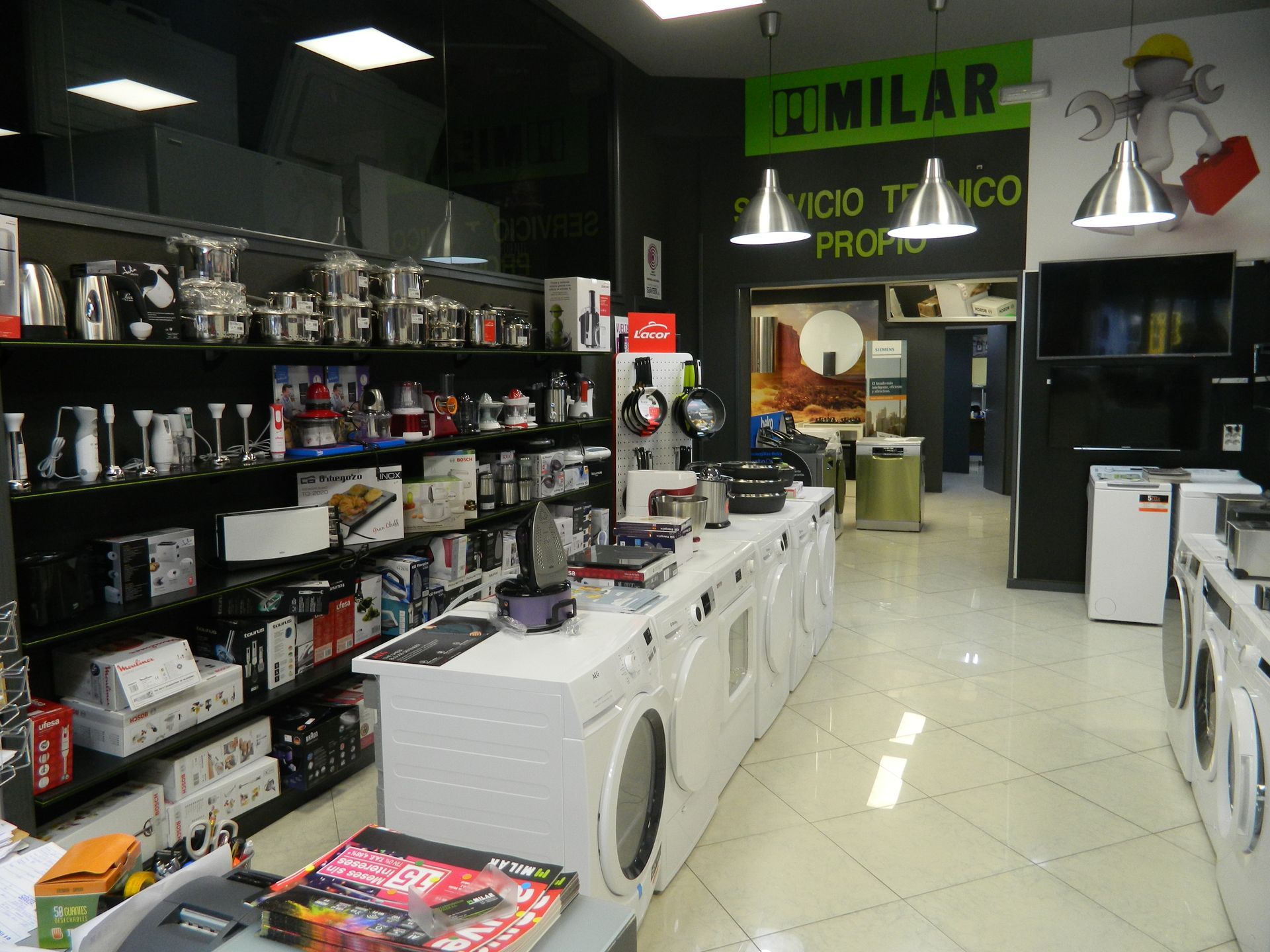 Disponemos de una tienda de la cadena Milar con taller de reparaciones propio, al suministrar un electrodoméstico nos encargamos del transporte, instalación y puesta en marcha dando instrucciones de funcionamiento al usuario, así como de la recogida del del electrodoméstico antiguo para su reciclaje mediante una empresa especializada en la gestión de residuos.